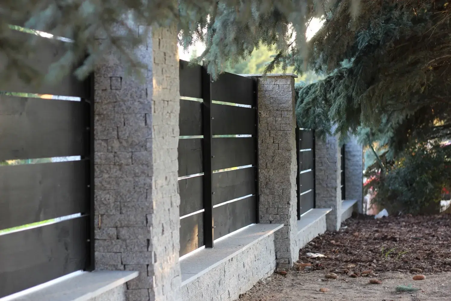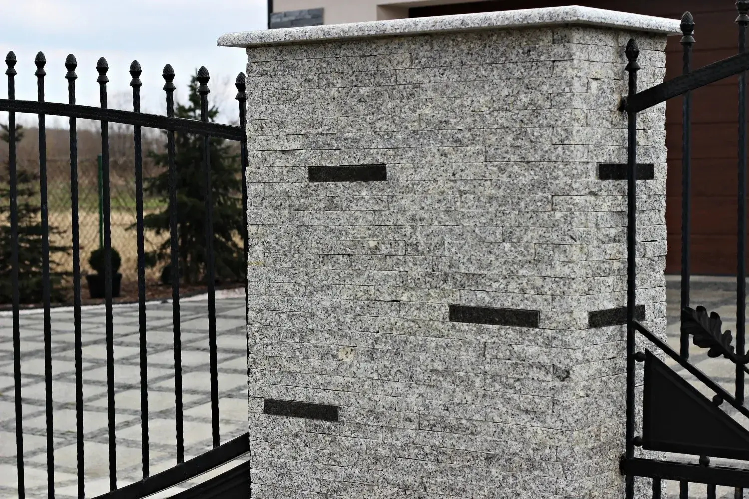 Slate is versatile for depositing external facades. Many of our customers use slate to install fences. Fences from our Strzegom granite slate are presented elegantly, prestige and aesthetically. Slate is a natural, long-lived material, very resistant to all weather conditions, low and high temperatures. It belongs to a very high quality material ensuring longevity (up to 200 years), natural beauty and originality.